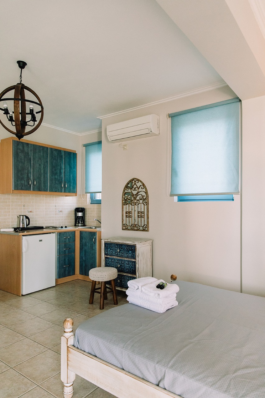 Το Deluxe δωμάτιο Rhea είναι σχεδιασμένο με ιδιαίτερη αισθητική, κομψή διακόσμηση και προσφέρει απόλυτη άνεση. Οι χώροι του δωματίου περιλαμβάνουν διπλό κρεβάτι King Size με οικολογικό στρώμα, ντουλάπα, μαξιλάρια, εκλεκτά λινά, καναπέ με τραπεζάκι, τραπέζι κουζίνας 4 ατόμων και ιδιωτικό μπαλκόνι με πανοραμική θέα. Το μπάνιο περιλαμβάνει καμπίνα ντους, νιπτήρα, βαμβακερά μπουρνούζια, παντόφλες, στεγνωτήρα μαλλιών καθώς και μια σειρά προϊόντων προσωπικής περιποίησης APIVITA. Στις παροχές του Deluxe δωματίου περιλαμβάνονται Smart τηλεόραση 32’’ με επίπεδη οθόνη υψηλής ευκρίνειας, δωρεάν Wi-Fi Internet υψηλής ταχύτητας, αυτόνομος κλιματισμός, απλώστρα, πλήρως εξοπλισμένη κουζίνα, καφετιέρα και τοστιέρα. Αφεθείτε στον κόσμο του Ammos και απολαύστε μια μοναδική εμπειρία φιλοξενίας.